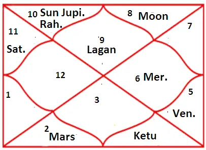 (b) Jupiter and Sun were again together though here Jupiter got debilitated and joined the company of Rahu, which is good for politics in which there should be willing infraction of normal scruples of conduct.