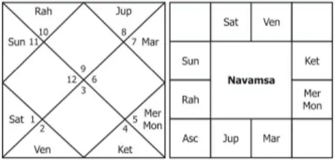 Chart No. 3- Born on 21-5-1940 at 7-50 a.m. at Bangalore. Balance of Jupiter Dasa: 1 year, 7 months and 6 days.