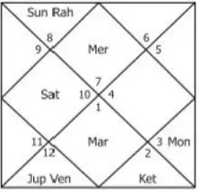 Here, the readers will notice that Mars is in the second house and is exalted in the Dasamsa Chart (and also Navamsa). But still Mars cannot give a career betterment. This is because Mars rules the 3rd and the 8th houses and is, therefore, the worst malefic for a Virgo ascendant nativity.